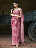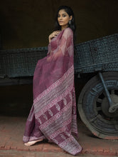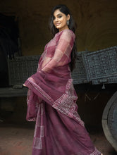 Dabu Hand Block Printed Kota Doria Saree - Maroon Geometric