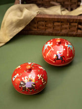 Exclusive, Fine Kashmiri Art Decorative Dome Boxes - Red Polo (Set of 2)